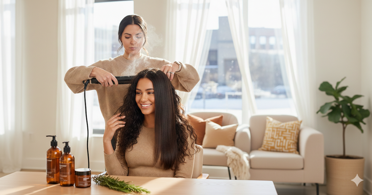 The treatment uses a professional grade solution that bonds to the hair and is then sealed with heat. This process helps lock in hydration while preventing future dryness. For winter damaged hair, this is especially important because the treatment helps rebuild smoothness that harsh weather often removes. The result is hair that feels more hydrated and manageable.